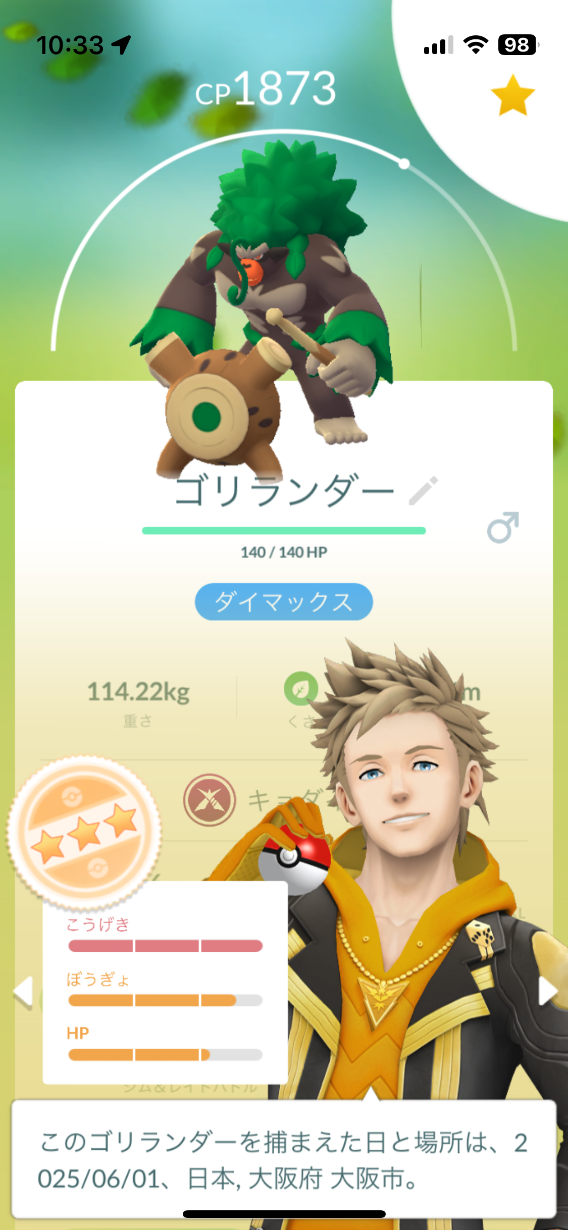 キョダイマックスのゴリランダーがゲットできました!大阪のフレンドのレイドに参加してなんとかですが…これ地元でやるのはかなり厳しそうだなぁ。何人集まらないといけないんだろう💦